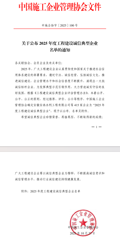 工程局公司榮獲2025年度工程建設誠信典型企業