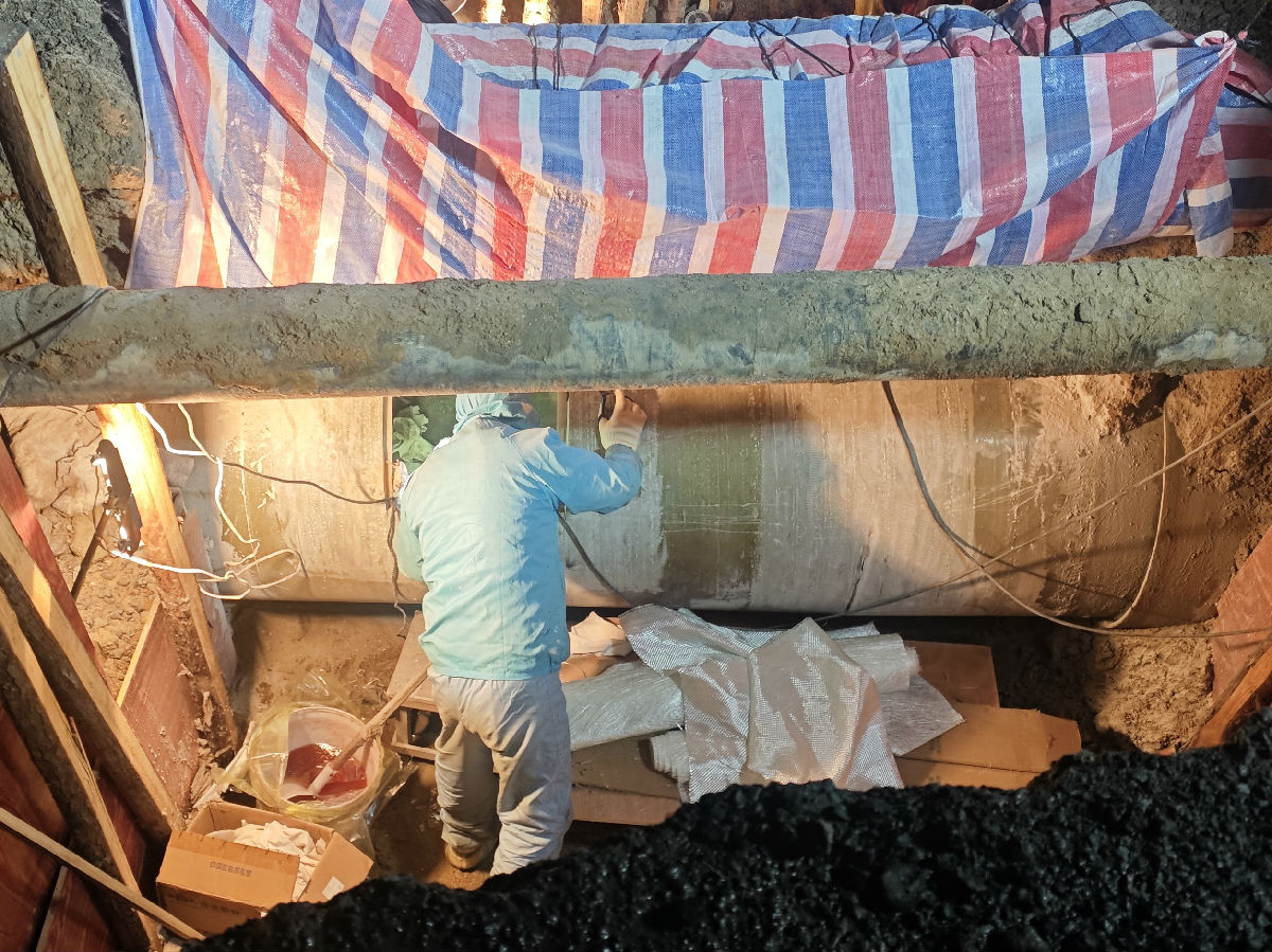 真正的挑戰(zhàn)才剛剛開始。修復必須進入管道內部作業(yè),搶修人員在管道上方開出一個40×50厘米的“天窗”,將坑內和管道中的積水抽干。然而,冬日的積水冰冷刺骨,抽干后,管壁仍然濕滑。